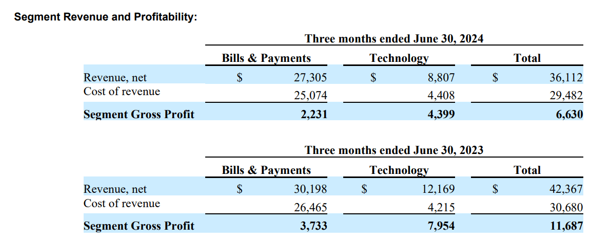 - Bills & Payments segment revenue was $27.3 million, a decline of 9.6% year-over-year, due to completion of projects, lower volumes, and client contract ends, offset by small positive impact of ~$25 million ACV won business in various stages of ramp.