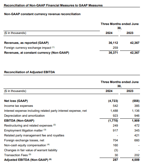● Adjusted EBITDA(1): Adjusted EBITDA was $0.3 million, a decrease of 92.8% compared to $4.0 million in 2Q 2023. Adjusted EBITDA margin was 0.8%, a decrease of 870 basis points from 9.5% in 2Q 2023.